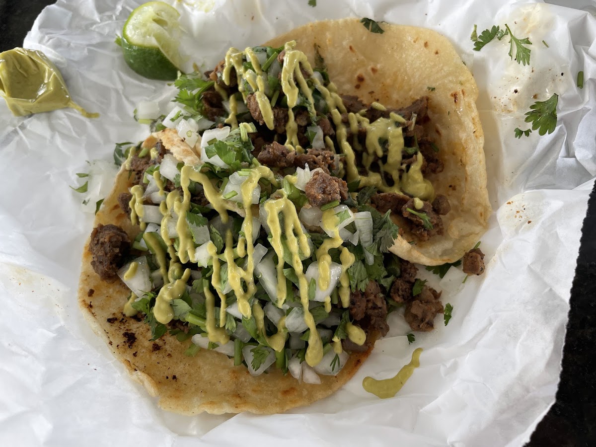 This is my number one taco spot. Everything I’ve tried from here is amazing. The aqua frescas are addicting and the woman that works the truck is so sweet! Definitely worth coming here.